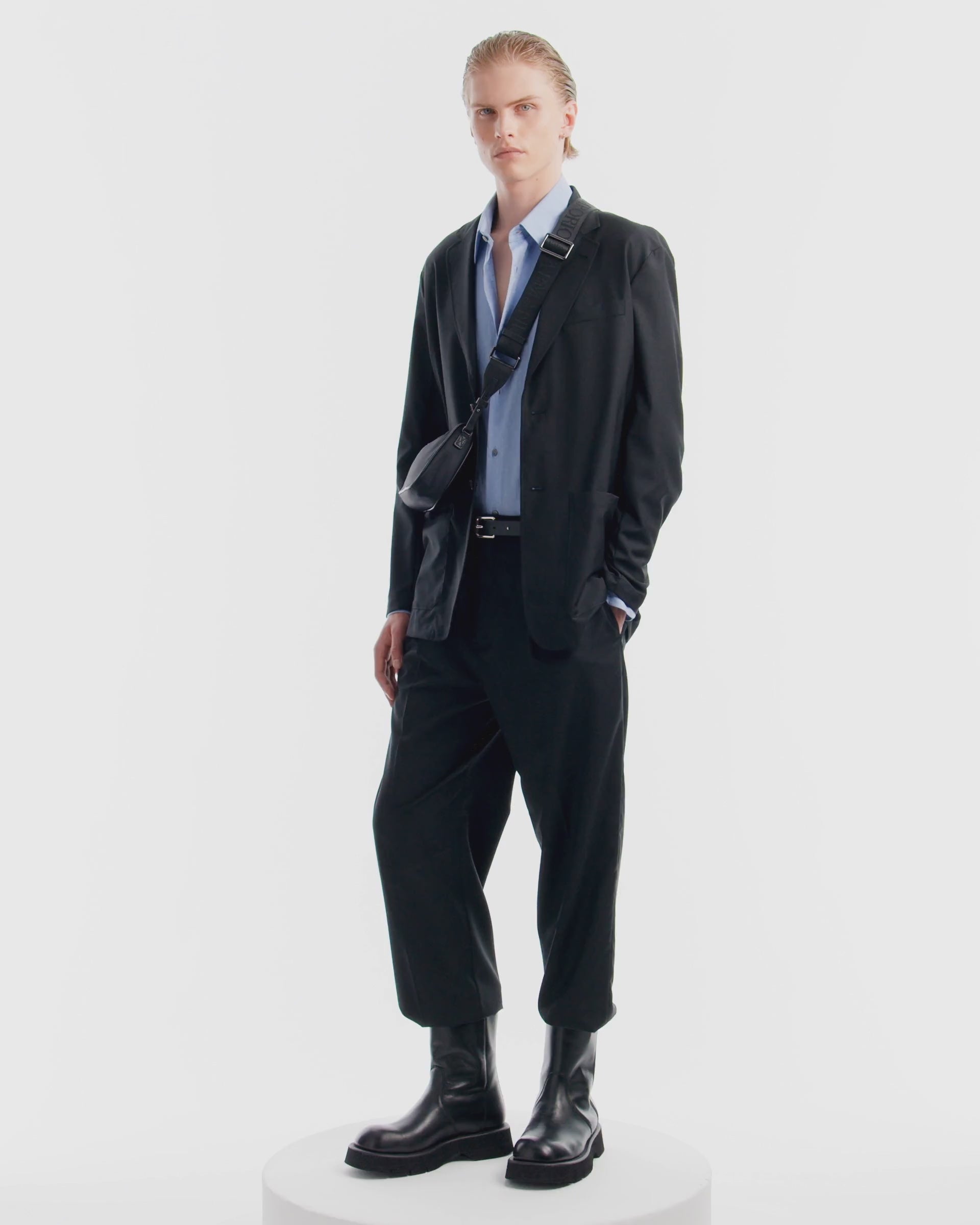 Stand out with a contemporary and eco-friendly accessory: this recycled nylon shoulder bag combines style and environmental responsibility. The linear and modern design is embellished with regenerated leather details and the iconic metal eagle logo . Featuring a zip closure for maximum security and an adjustable logo webbing shoulder strap , it's perfect for completing casual and urban looks. A must-have for those seeking an elegant, functional, and eco-friendly accessory.