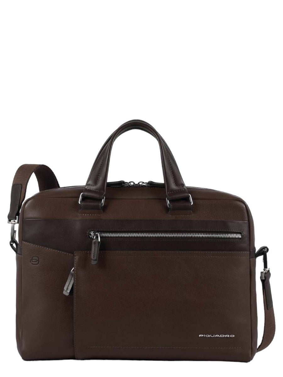 Počítačová aktovka CARY od Piquadro je navržena tak, aby nabízela eleganci a funkčnost. Tato aktovka vyrobená z prémiové kůže má měkkou konstrukci a horizontální design, ideální pro moderního profesionála. Měří 38 x 27 x 10 cm, s jedinou hlavní přihrádkou, která pojme notebook až 14 palců díky polstrované neoprenové přihrádce.