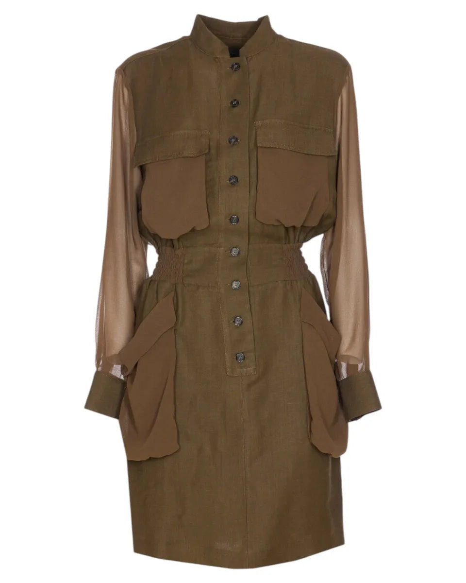 Kurzes Hemdblusenkleid aus Leinen und Viskose mit Taschen und Georgette-Ärmeln