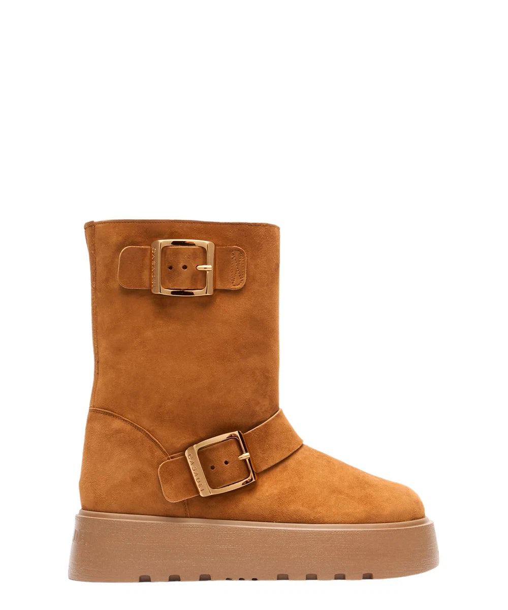 Die Ale Alpsenales-Stiefel kombinieren minimalistisches Design und lineare Formen und sind somit ideal für die Stadt und das kalte Bergklima. Diese von Bikerstiefeln inspirierten Stiefeletten bestehen aus rodeofarbenem Wildleder mit Kunstfellfutter und halten Ihre Füße im Winter warm. Die verstellbaren Maxi-Schnallen verleihen dem Modell eine kühne und moderne Note.