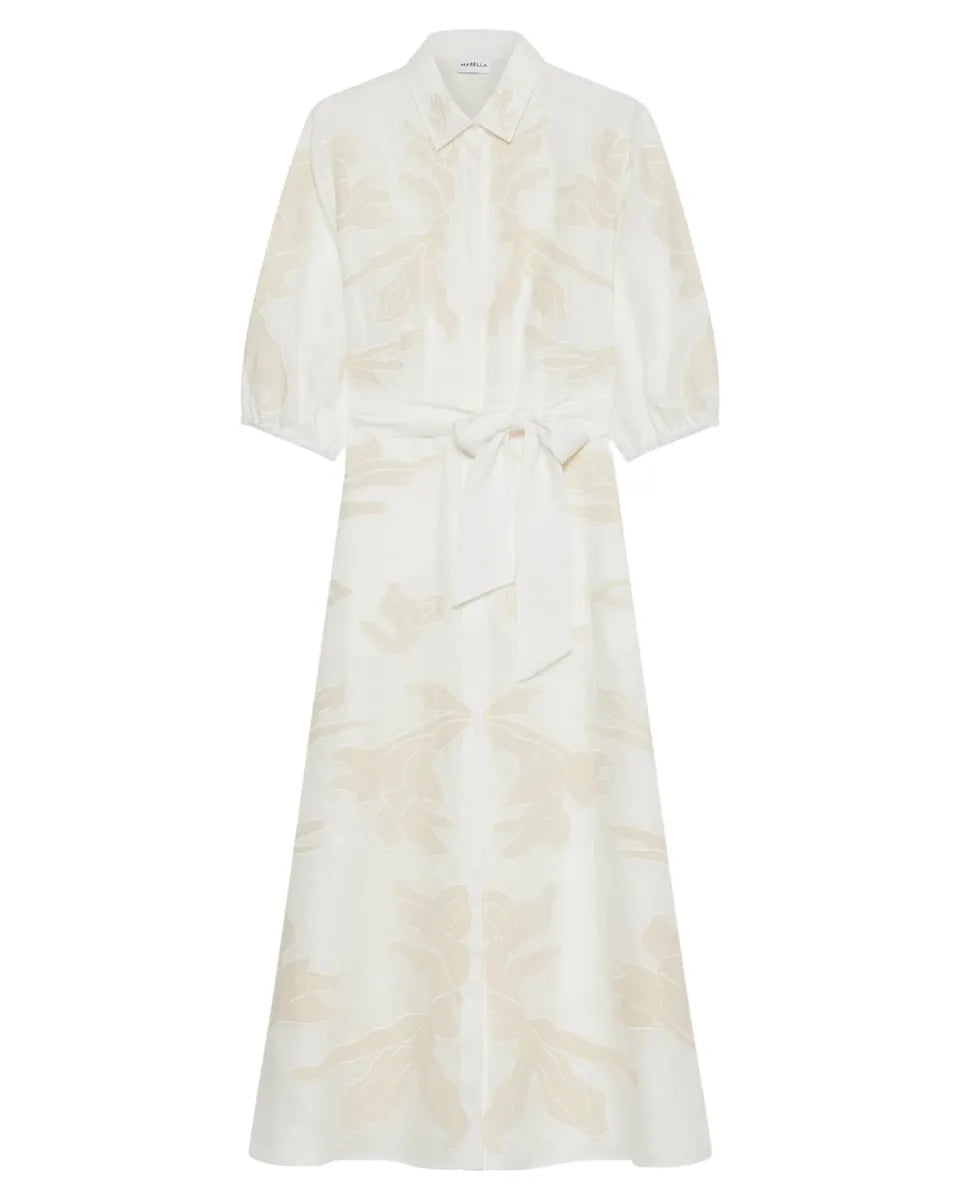 Abito Chemisier in Lino Ricamato Bianco-Marella-Abiti-Vittorio Citro Boutique