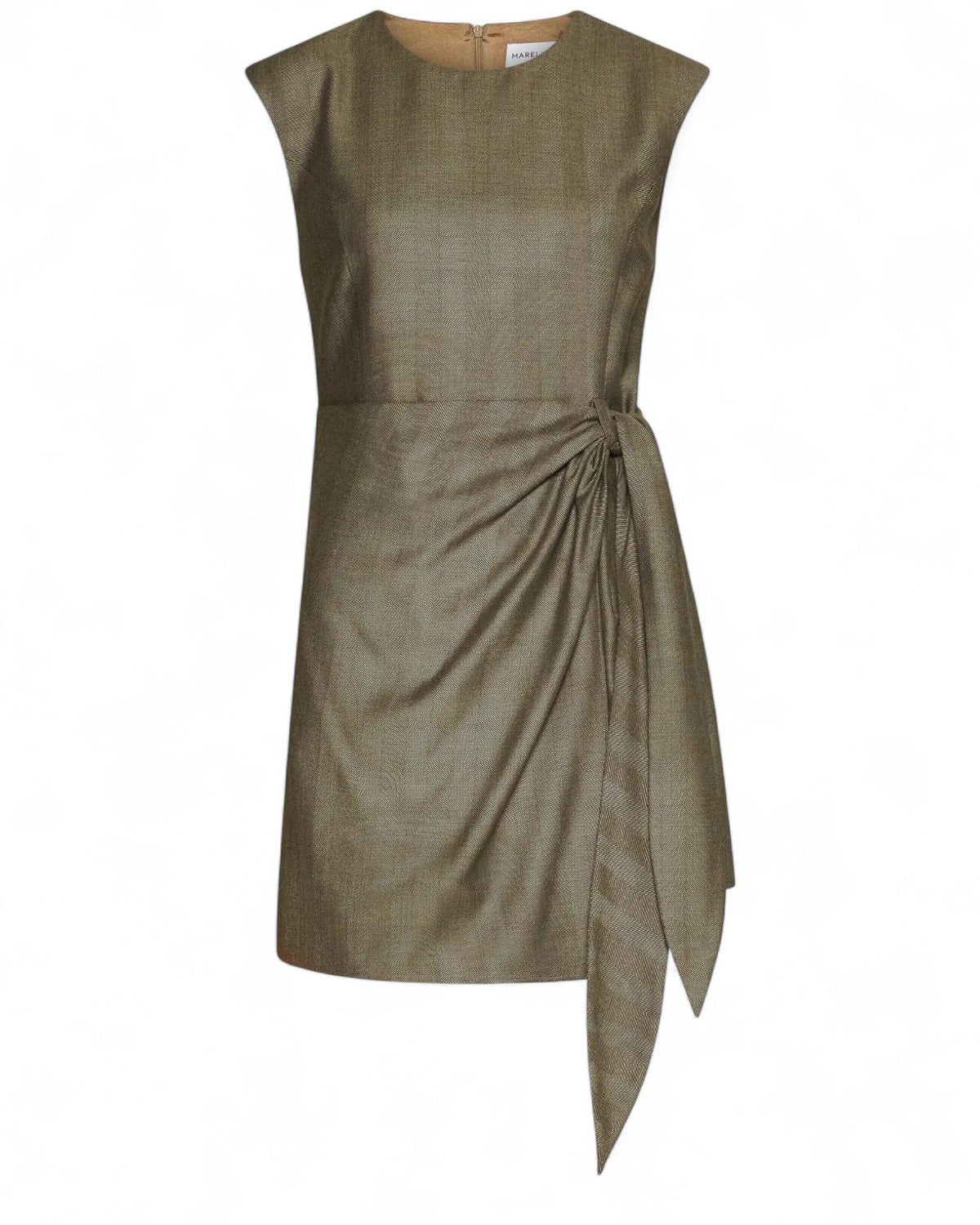 Il tubino in saglia Marella si rinnova con un twist contemporaneo. Realizzato in morbido tessuto di lana e viscosa effetto resca, questo abito smanicato presenta un fit femminile che valorizza la silhouette. Lo scollo a giro essenziale e la gonna con finto portafoglio vengono impreziositi dal nodo laterale con fusciacca sul fianco, dettaglio che dona movimento e raffinatezza. Completo di fodera interna e zip posteriore invisibile, è l’abito perfetto per occasioni formali o serate eleganti.