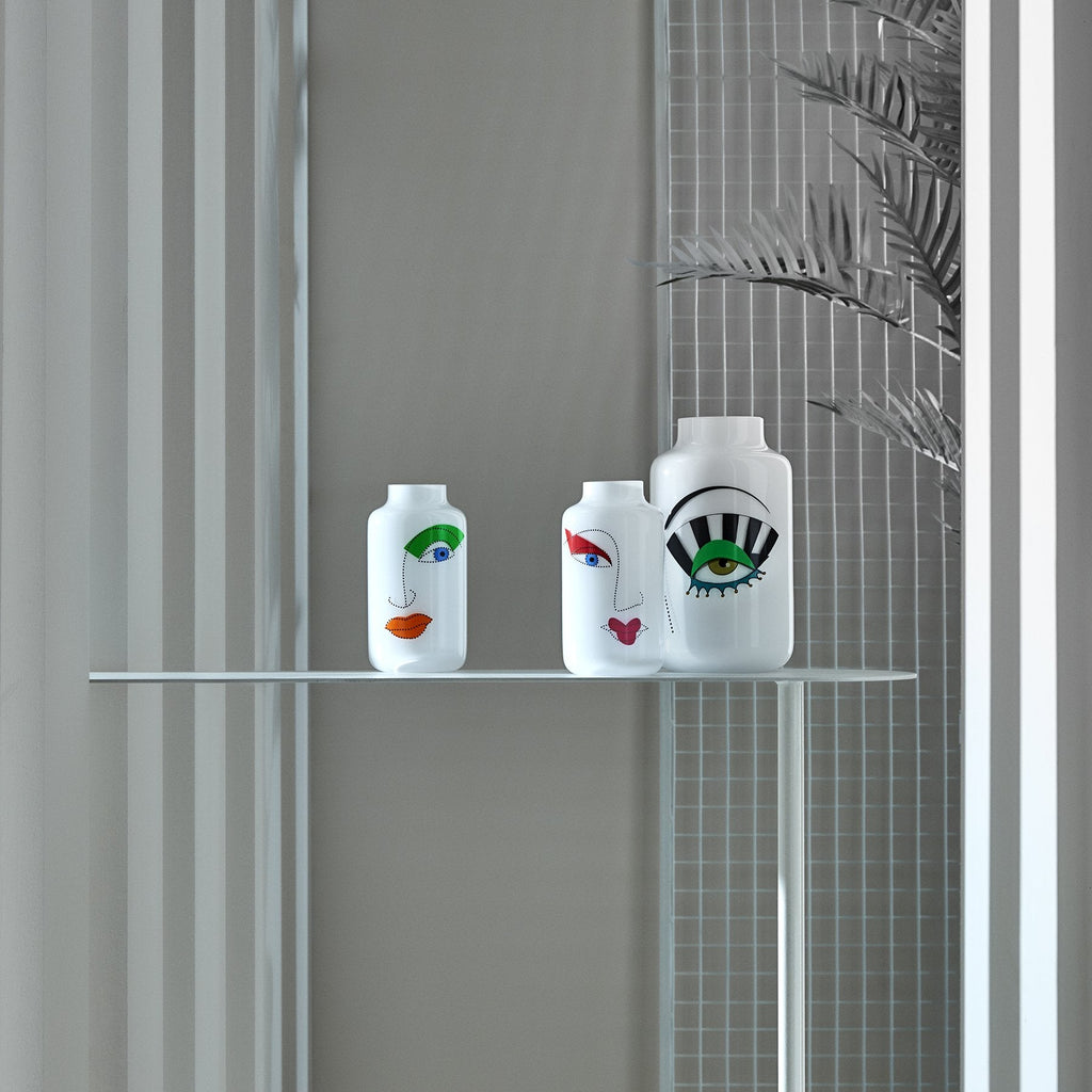 Highlighting the incredible talent of today’s emerging artists, this vase is part of the NUDE Rock & Pop Artist collection . The characteristic, understated design of the NUDE Mini Magnolia vase is livened up by a flamboyant face print, created by the graphic designer and illustrator Umut Karaman. Crafted from lead-free crystal and available in two sizes — this one is small.