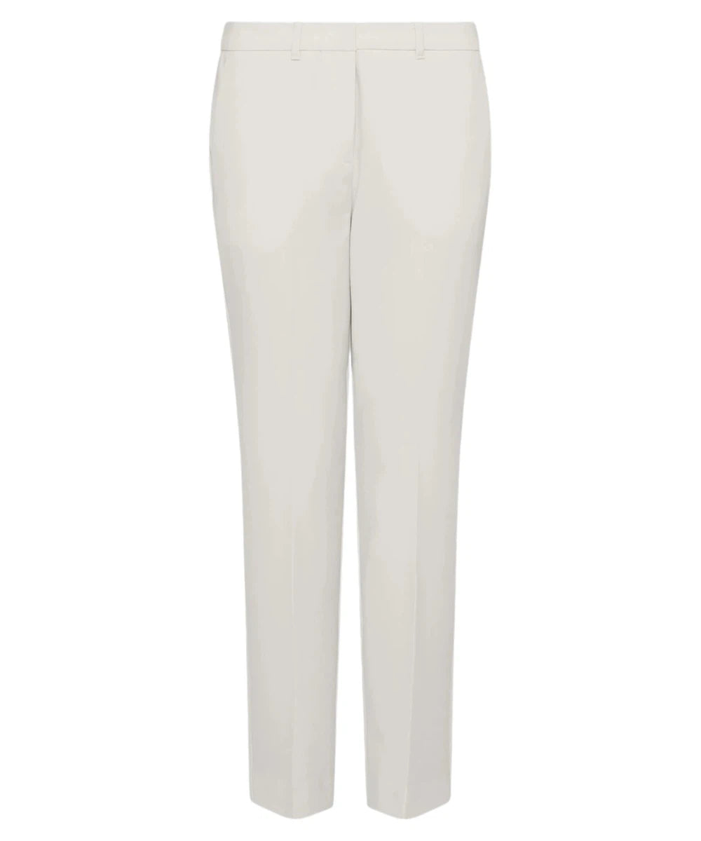 Marelline ozke chino hlače Gerona ponujajo popolno kombinacijo elegance in udobja. Izdelane so iz mešanice raztegljive volne z regeneriranim poliestrom in imajo ozek kroj, ki poudari žensko silhueto, ne da bi žrtvoval svobodo gibanja. Opremljen s stranskimi francoskimi žepi, zapiranjem na kavelj in stisnjeno gubo za brezhiben videz.